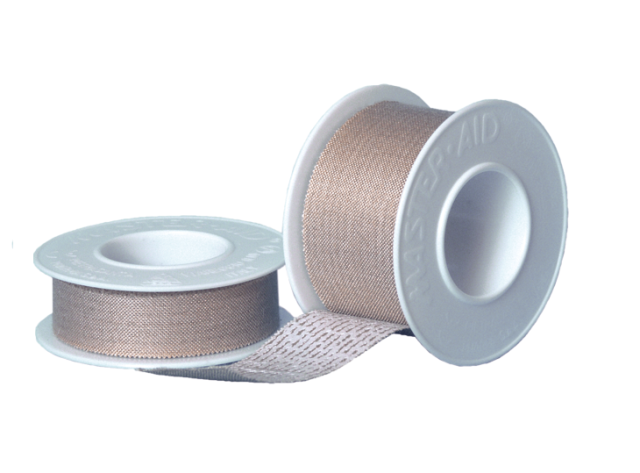 Esparadrapo de tela color piel en rollo para la fijación. Enrollado en un carrete de plástico transparente a la radiación. Con adhesivo Hot-Melt hipoalergénico. Material de fácil rasgado e impermeable.